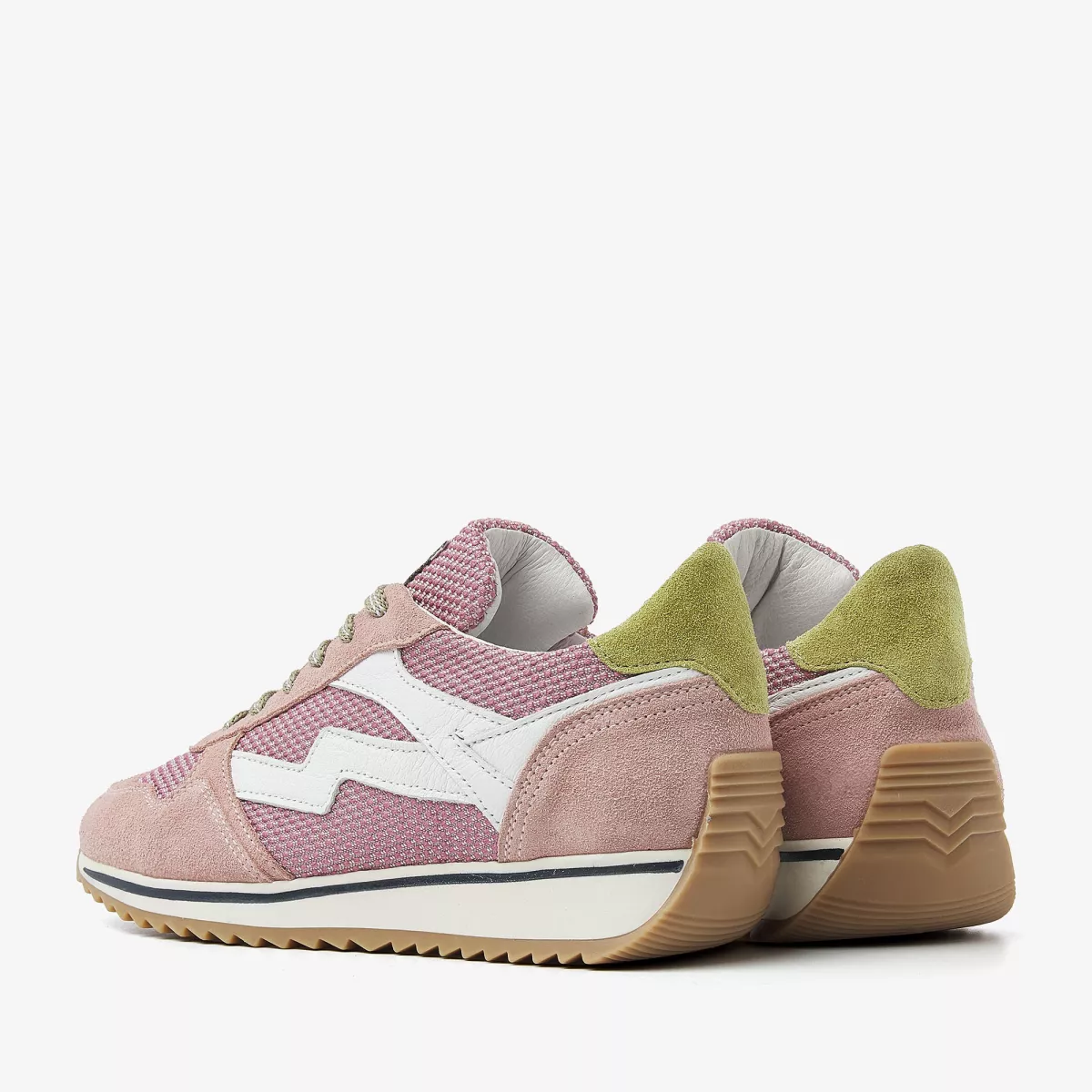 Retro vibes all over! Met deze trendy meerkleurige sneakers heb jij de ultieme retrolook te pakken. Deze eyecatcher straalt in een combinatie van roze en groen, met witte accenten die zorgen voor een frisse touch. De sneaker is gemaakt van hoogwaardig suède, leer en mesh, waardoor deze niet alleen stijlvol, maar ook super comfortabel is. De rubberen zigzagzool geeft je een stevige grip én een sportieve look: Mikki Alex has it all!