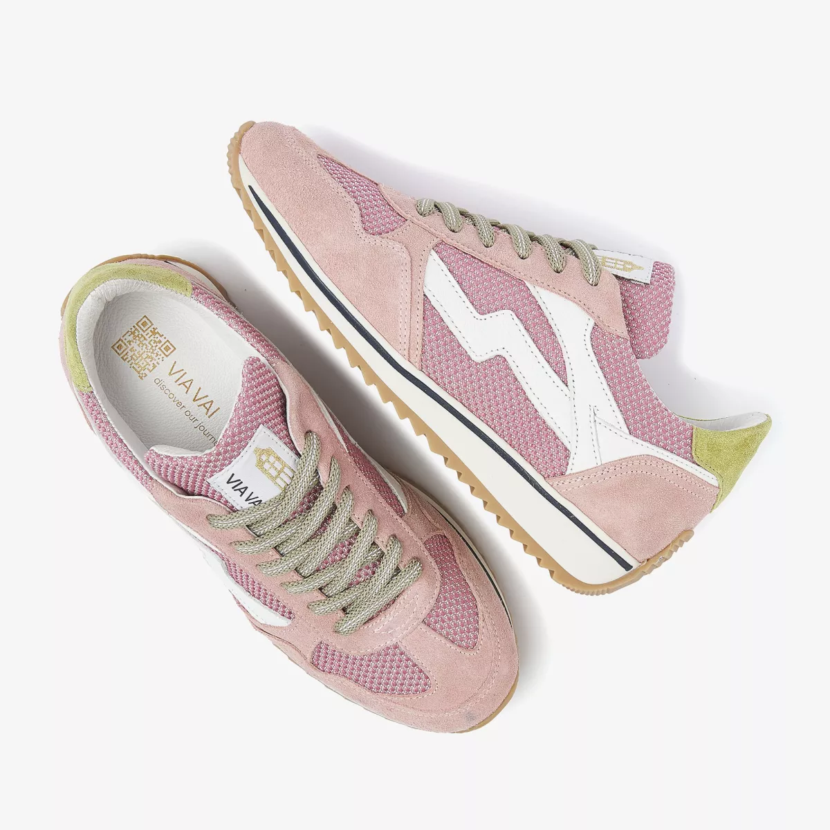 Retro style sneaker Tweekleurige veters VIA VAI logo op de tong Groen detail op de hiel Retro zool met belijning en stevig profiel Uitneembaar voetbed Leren binnenvoering Combinatie van hoogwaardig leer, suède en mesh Handgemaakt in Portugal