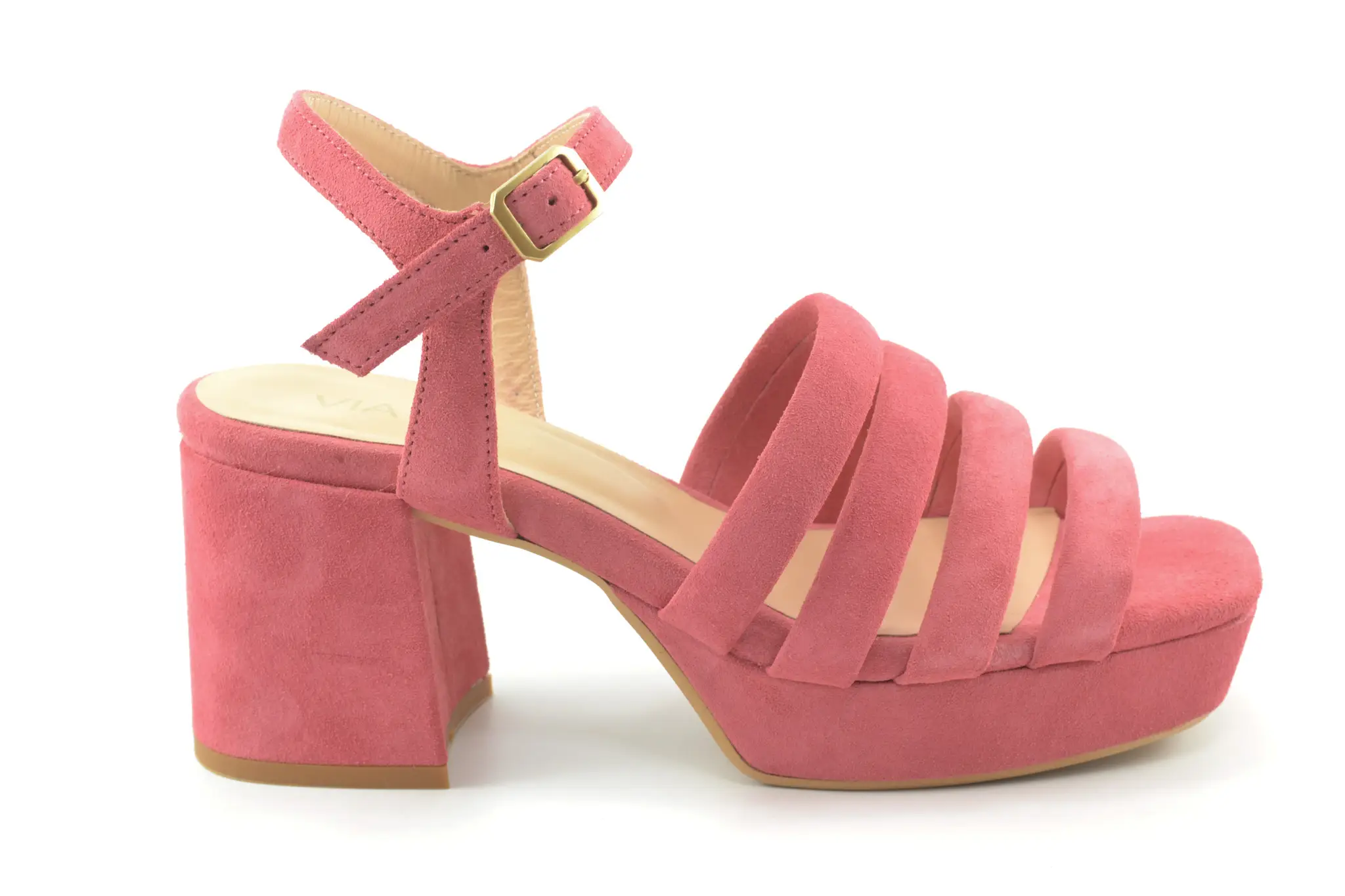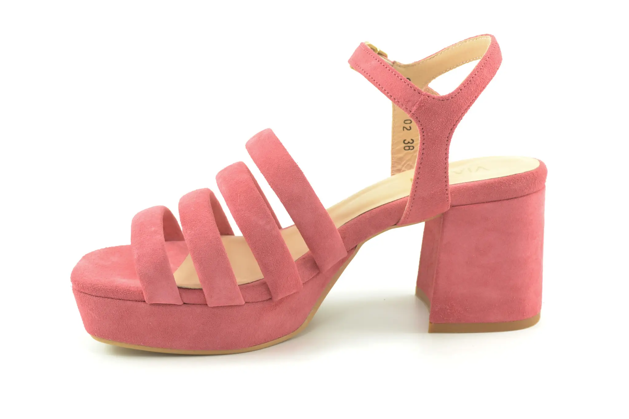 collectie. De rose sandalen staan voor classy, stijlvol en vrouwelijk. Dit wordt benadrukt door de speelse bandjes op de wreef. De plateauzool met blokhak geeft echte retro vibes en brengt ons terug naar de sixties & seventies. Met Cassia Scarlet maak jij een fashion statement!