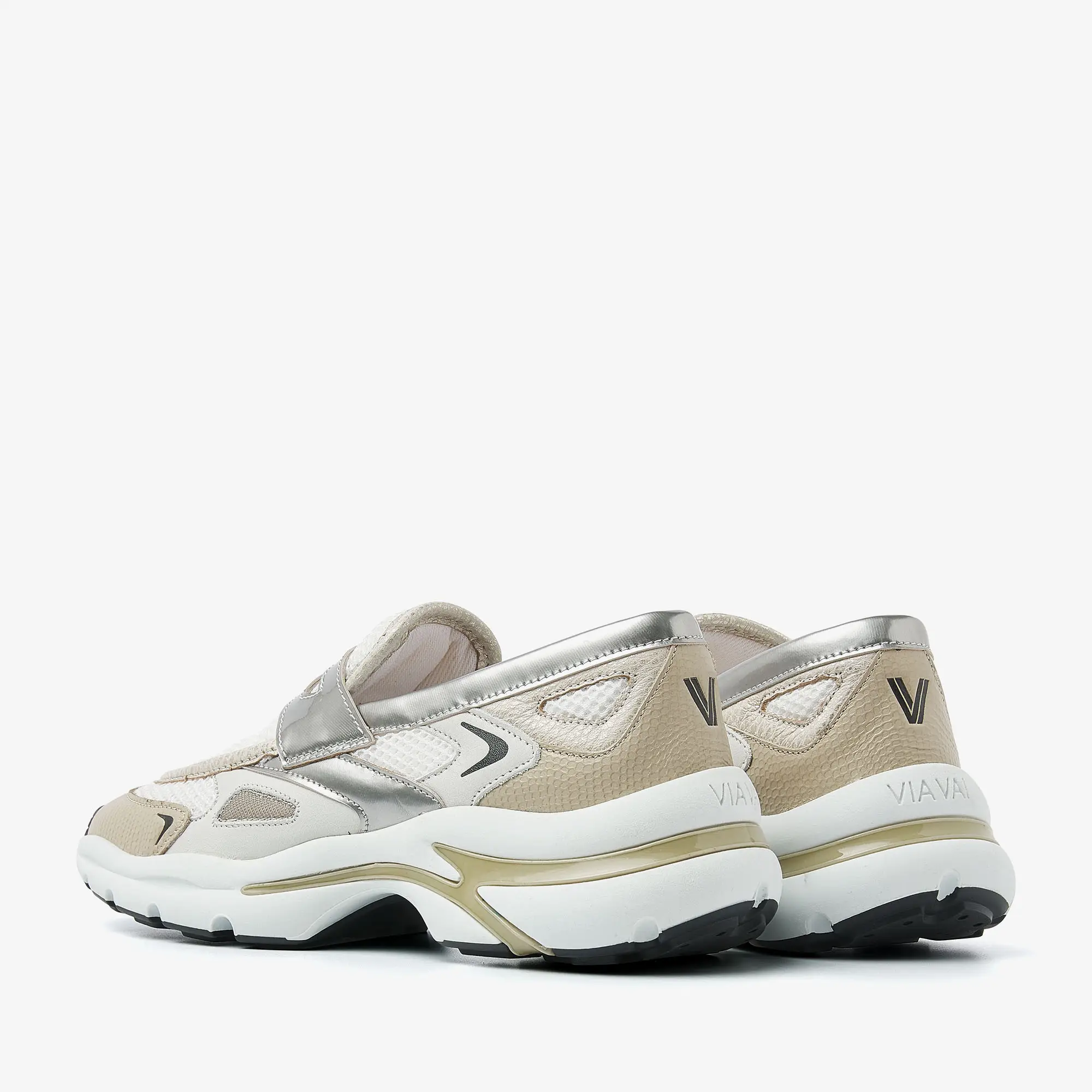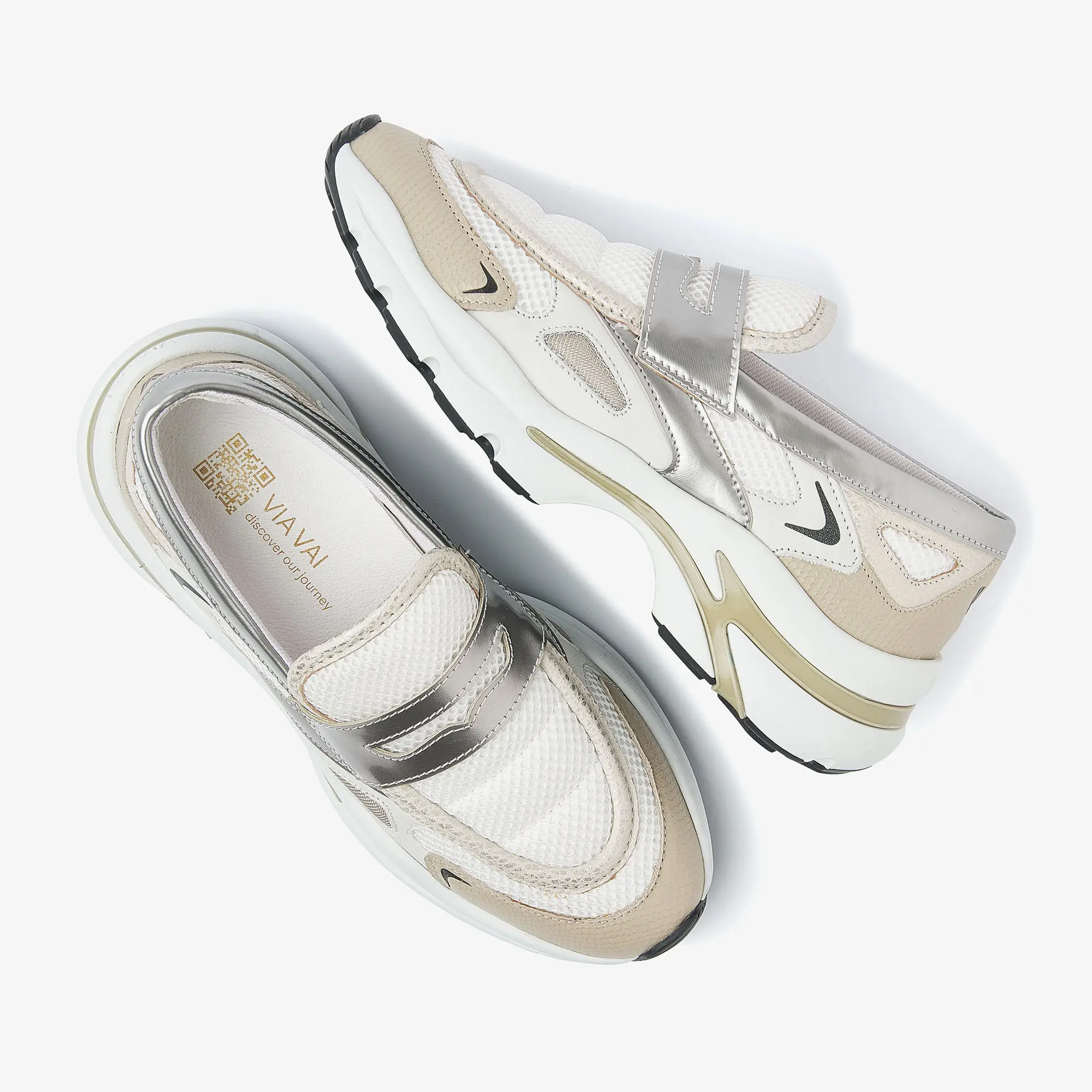 Vesper Lana combineert het instapgemak van een loafer met de sportieve look van een sneaker. De metallic en mesh details zorgen samen met de chunky zool voor een fashion forward look. Slip into style, step out in comfort.