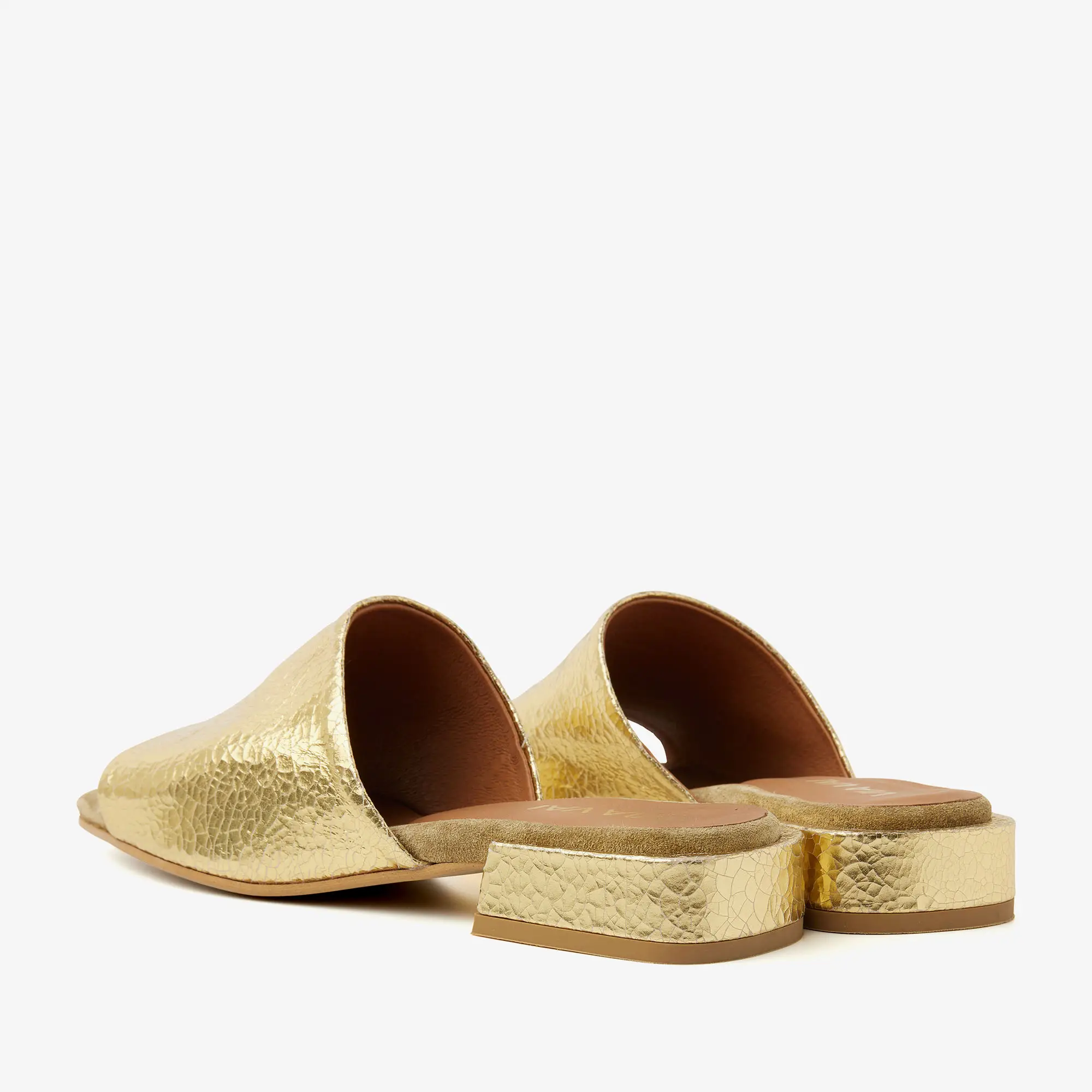 GIGI LUNA SLIPPERS COMBINEREN Combineer deze metallic slippers met een stoere jumpsuit. Of creëer een vrouwelijk geheel door Gigi Luna te dragen met een luchtige, lange jurk: de