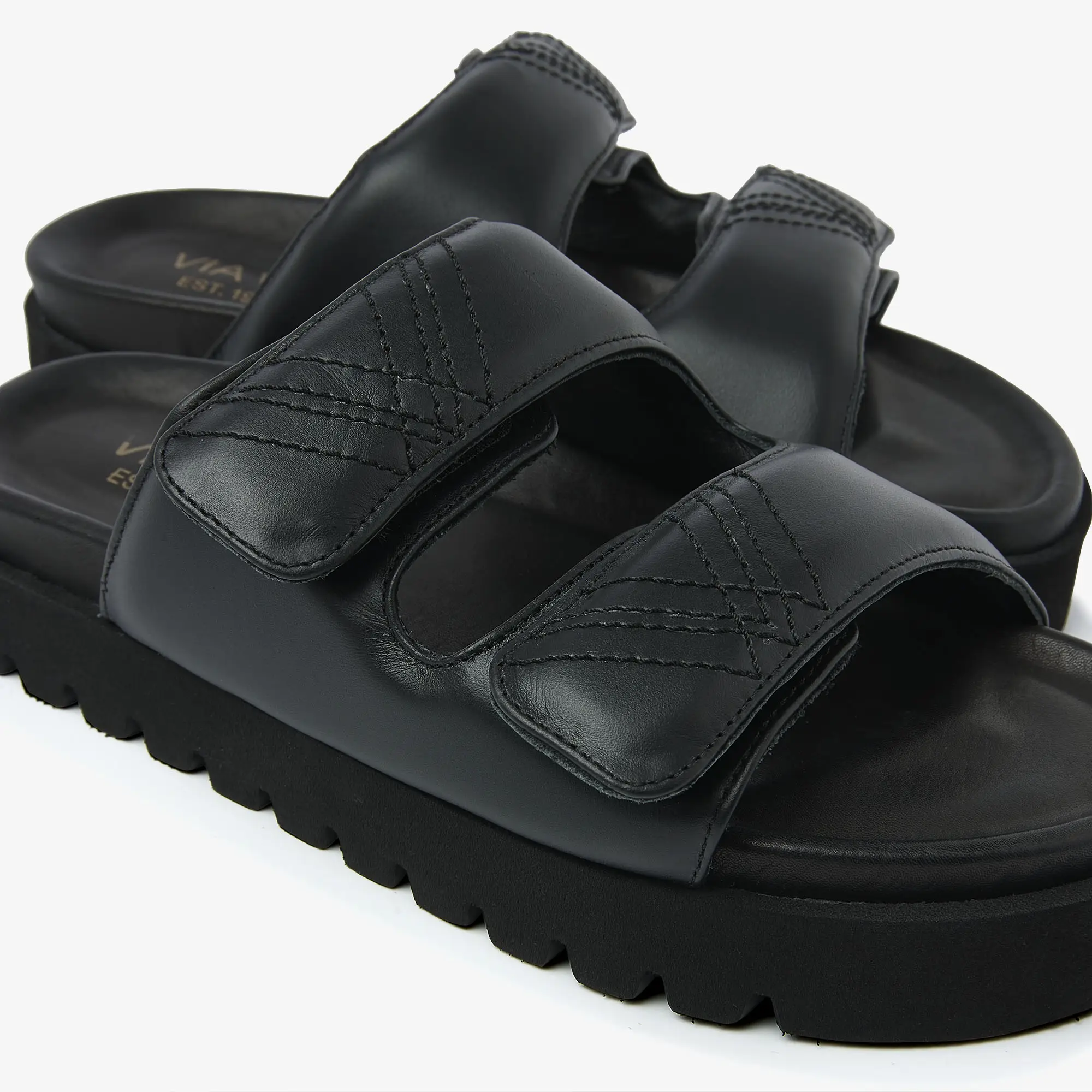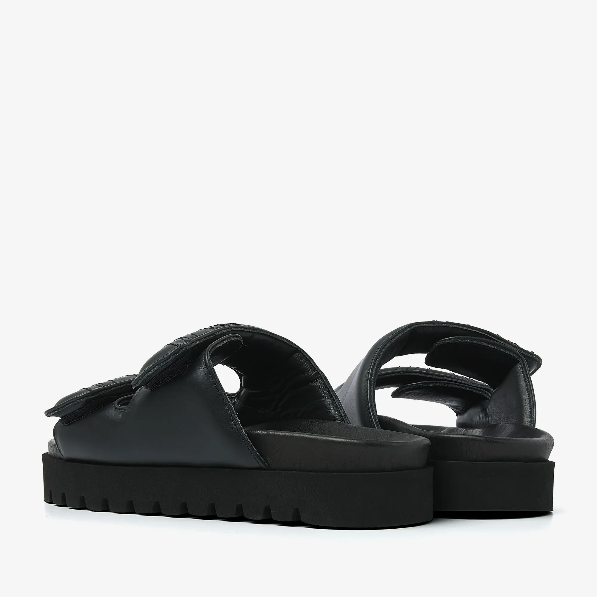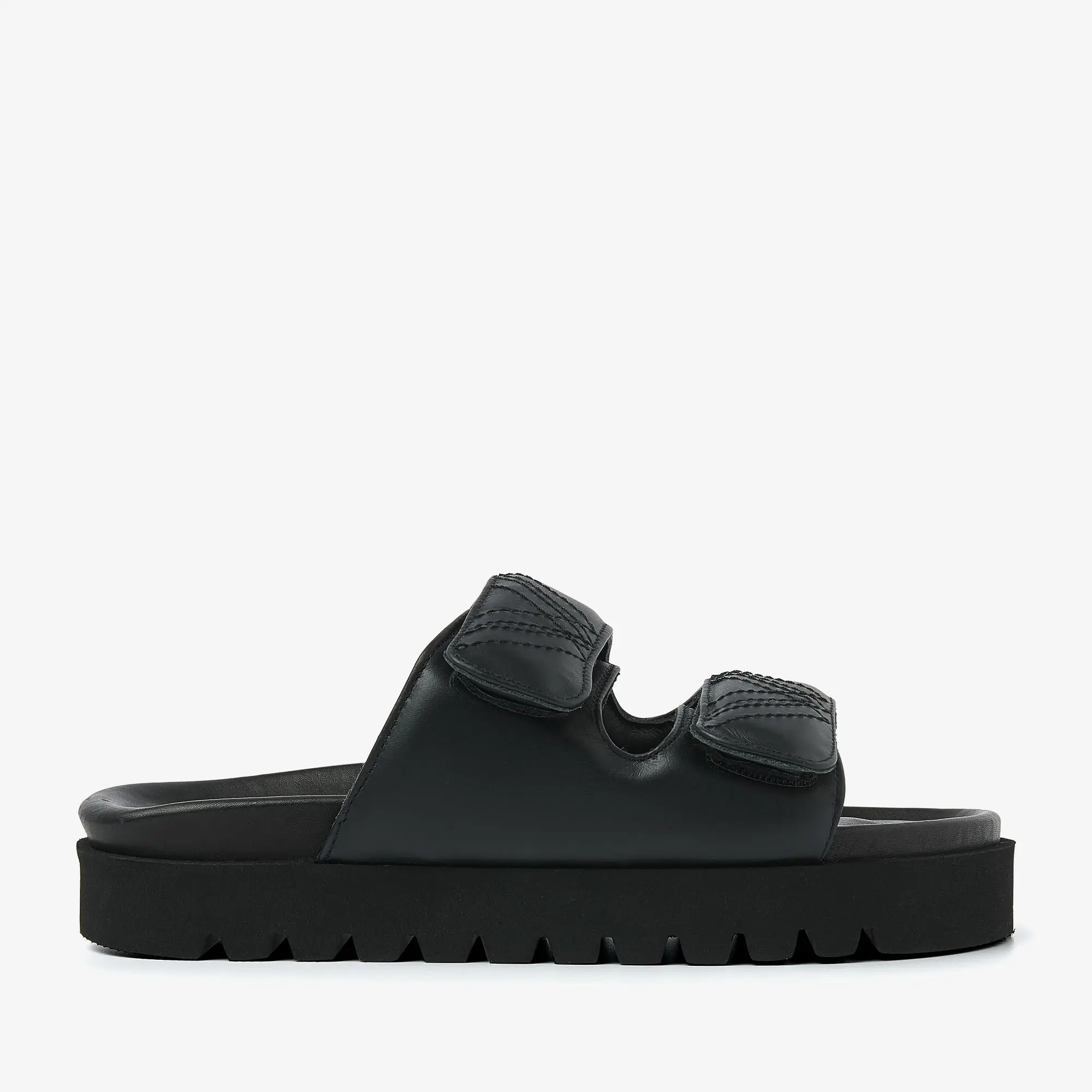 Summer vibes guaranteed! Rae Lidia is minimalisme op zijn best, maar met een stoer randje. Deze slipper is jouw nieuwe summer must-have! Rae Lidia komt in een elegante zwarte kleur, waardoor hij bij alles past. De brede, gewatteerde banden geven niet alleen een moderne look, maar zorgen met de klittenbandsluiting ook voor ultiem draagcomfort. En de zool? Die mag er ook zijn! De chunky zwarte zool met grove kartels geeft de slippers een speelse twist.