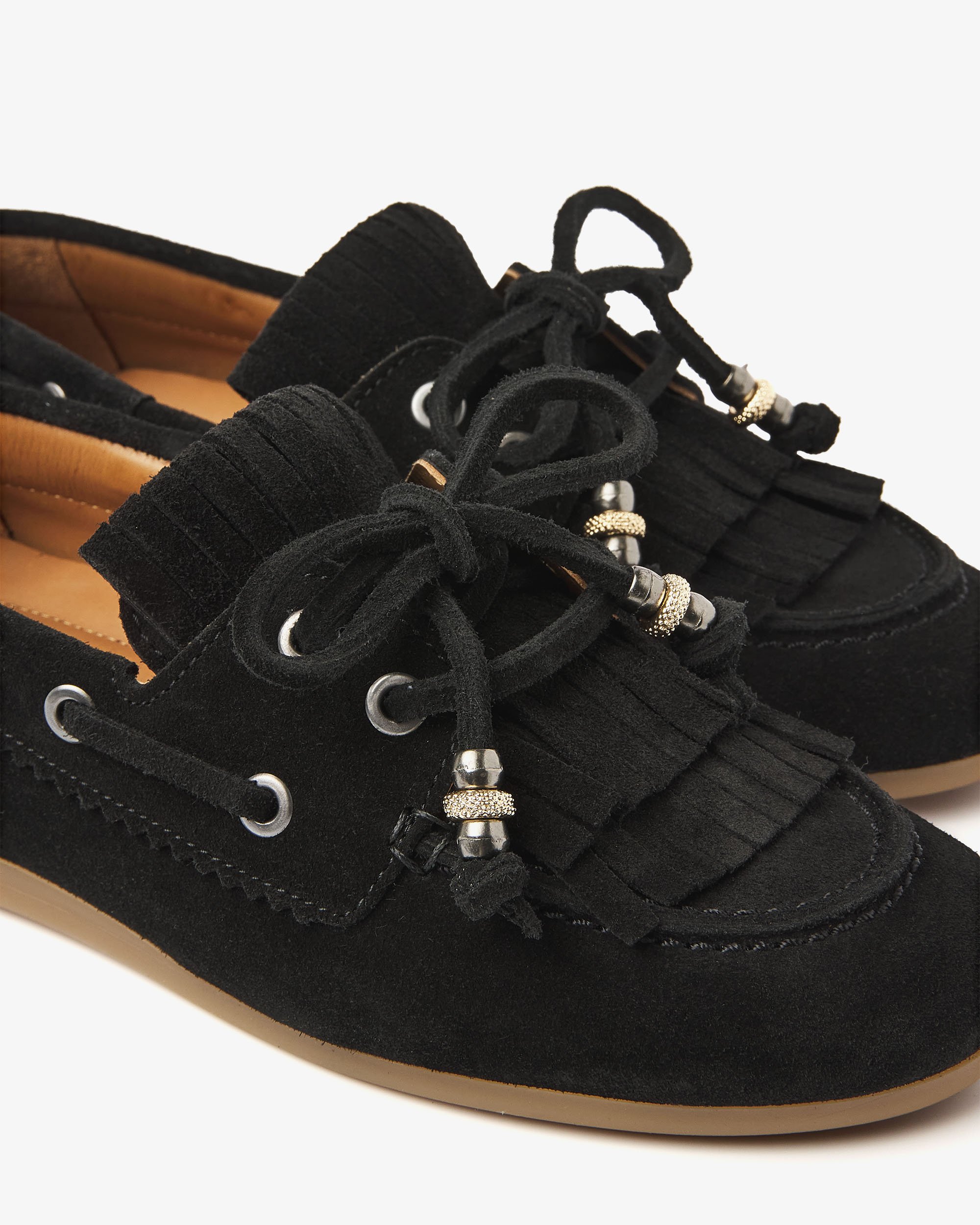 Soms wil je gewoon een schoen die je overal bij kunt aantrekken, maar die wel nét dat beetje extra heeft. Deze cognac mocassins zijn precies dat. June Loua heeft een klassieke mocassin-vorm met een afgeronde neus en een flexibele, lichtbruine zool gemaakt van comfortabel rubber. De opvallende veterdetails rondom de zijkant geven dat authentieke bootschoen accent, terwijl de franjes op de wreef zorgen voor een speels en nonchalant effect. En die sierlijke strik met decoratieve kraaltjes? Die maken June Loua helemaal af!