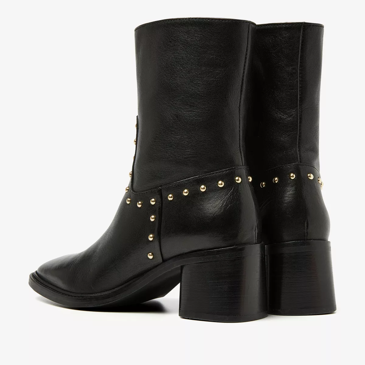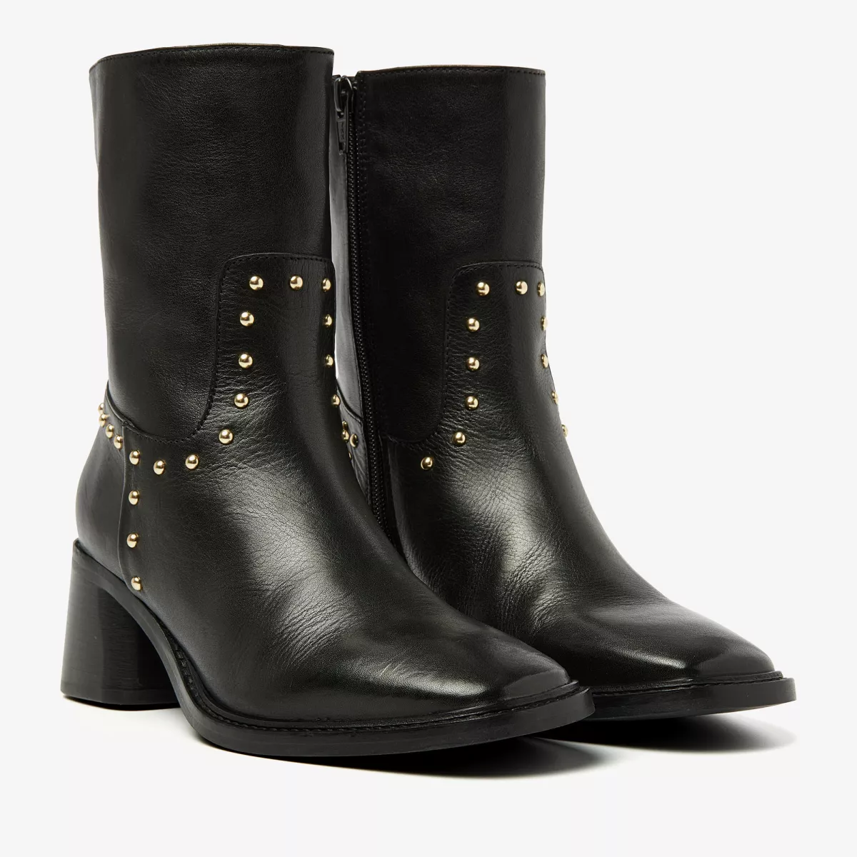 Op zoek naar het perfecte enkellaarsje voor een edgy, moderne look? Dan is Zoey Rose de ultieme match voor jou! Dit stijlvolle enkellaarsje, gemaakt van hoogwaardig zwart leer, straalt één en al klasse en elegantie uit. De subtiele gouden studs geven een stoere, maar toch vrouwelijke touch die elke outfit compleet maakt. Daarnaast is Zoey Rose voorzien van een comfortabele blokhak en een ritssluiting aan de binnenkant, zodat jij er zo op weg loopt!