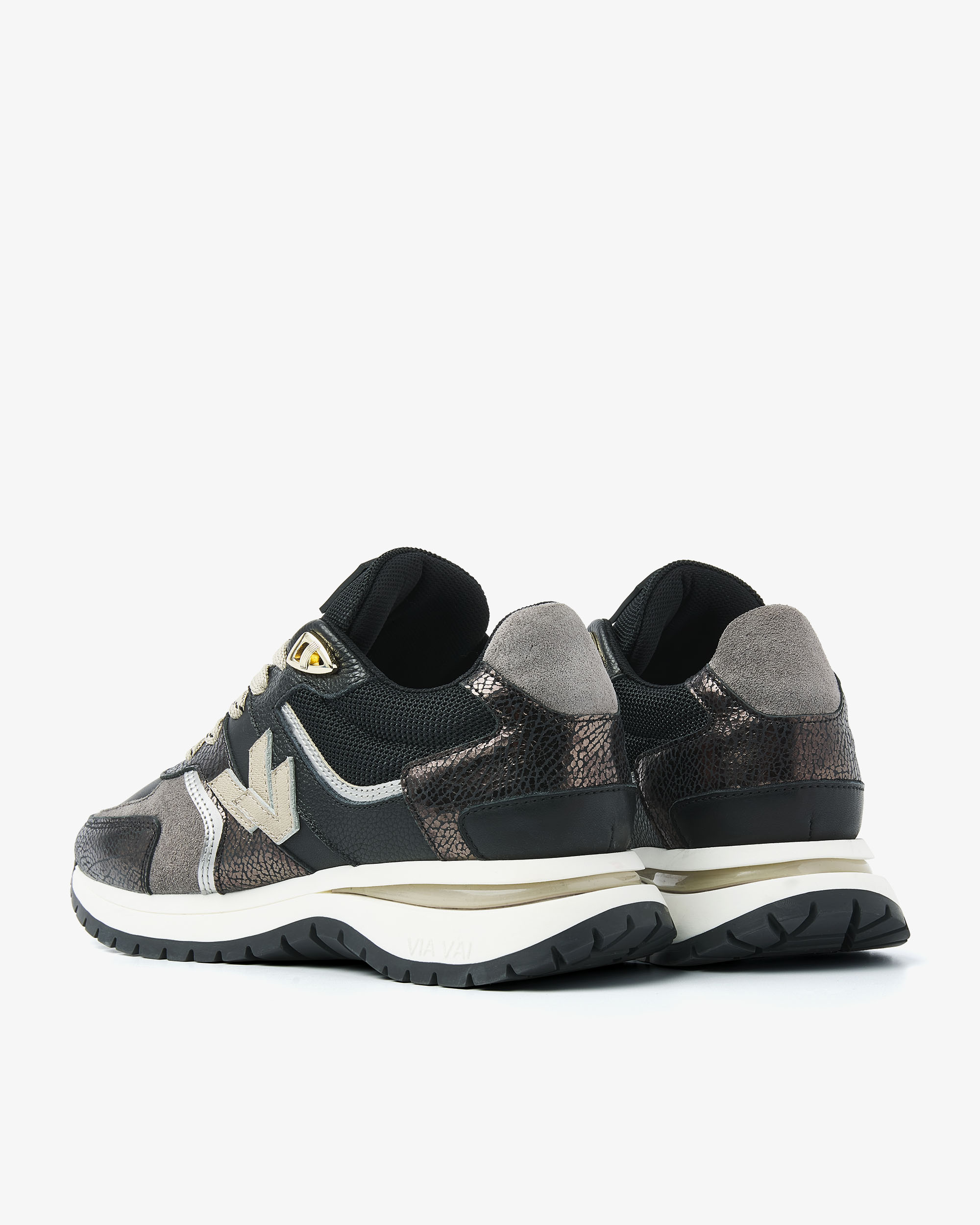 sneaker is geïnspireerd op de klassieke runner en gecombineerd met een verschillende luxe materialen voor een elegante look. Usher Davina heeft een sportieve zool met gekleurde inzet, wat zorgt voor een stoer contrast. Dankzij het foam – dat verwerkt is in de zool – loop je op wolkjes. De dubbele V, kenmerkend voor VIA VAI, maakt de sneaker af. Geloof ons: Usher Davina wordt