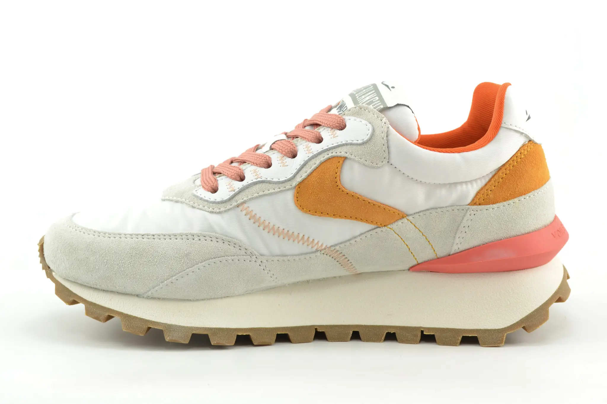 kleur wit en oranje (white-peach) buitenkant: suede-leer-textiel