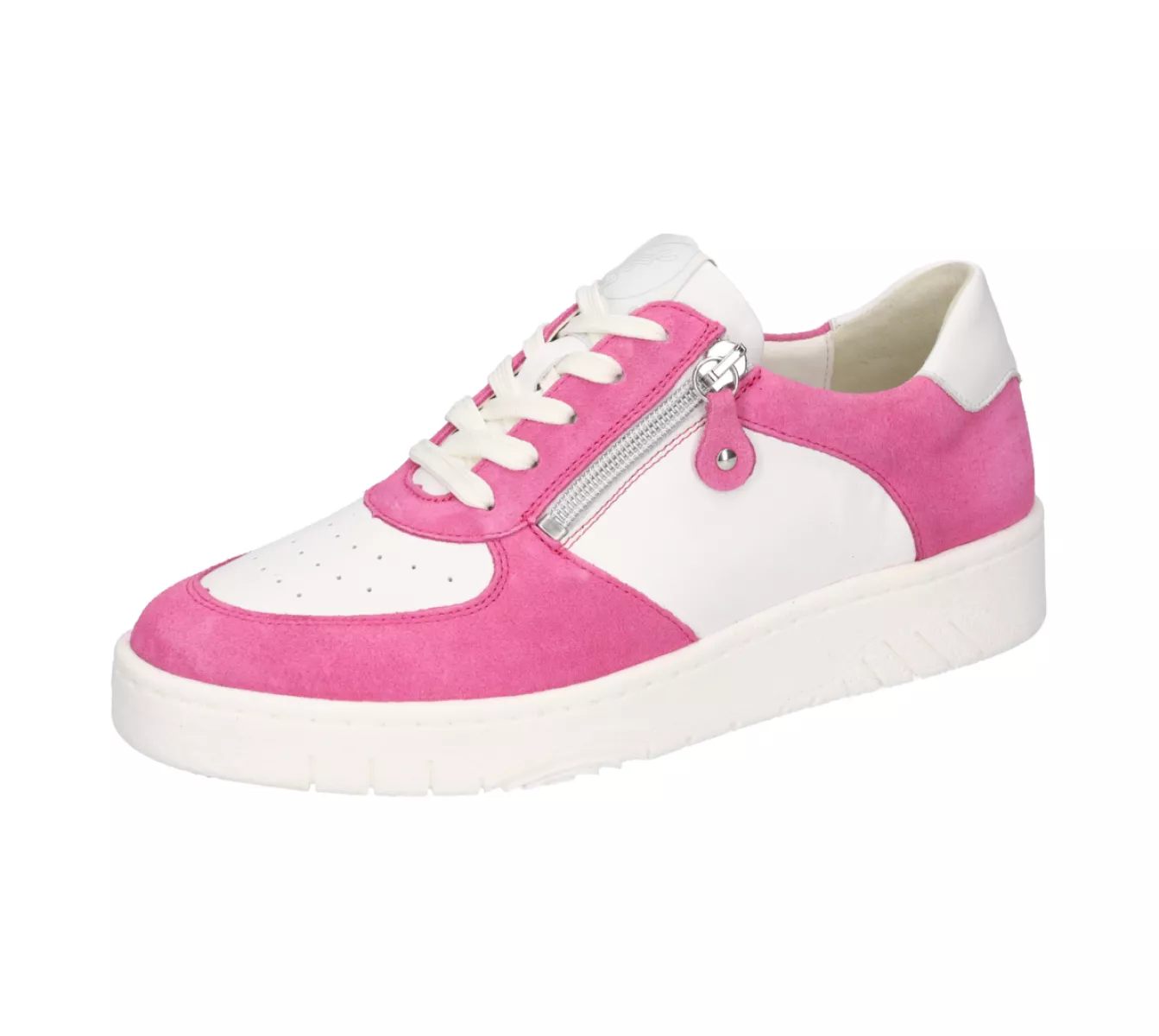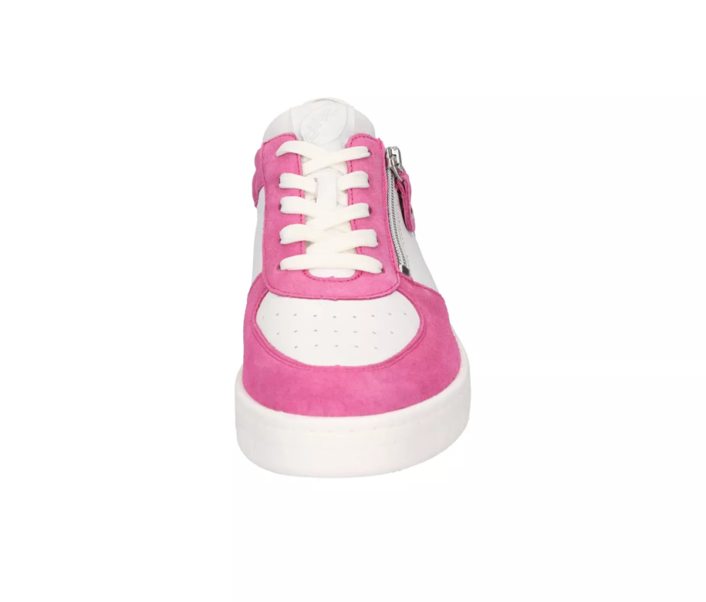 details: deze mooie comfortabele veterschoen van het bekende Duitse merk Waldlaufer heeft een breedtemaat en uitneembaar zooltje. Door de luchtvering is het of je op wolken loopt. De rits zorgt er voor dat je er makkelijk in- en uitstapt. En daarbij is deze effen witte sneaker met fuchsia suede overlays nog eens heel mooi ook. Modisch comfort zoals alleen Waldlaufer dat kan.