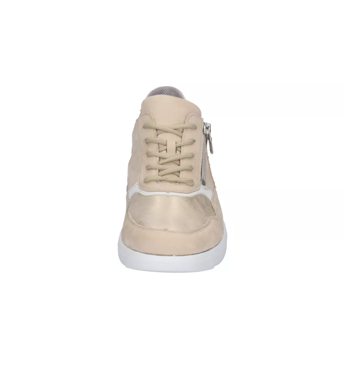 artikelnr: 668001.415.095 K-Funky wijdte: K kleur: lichtgoud buitenkant: leer binnenkant: leer en textiel sluiting: veters en rits uitneembaar zooltje: ja