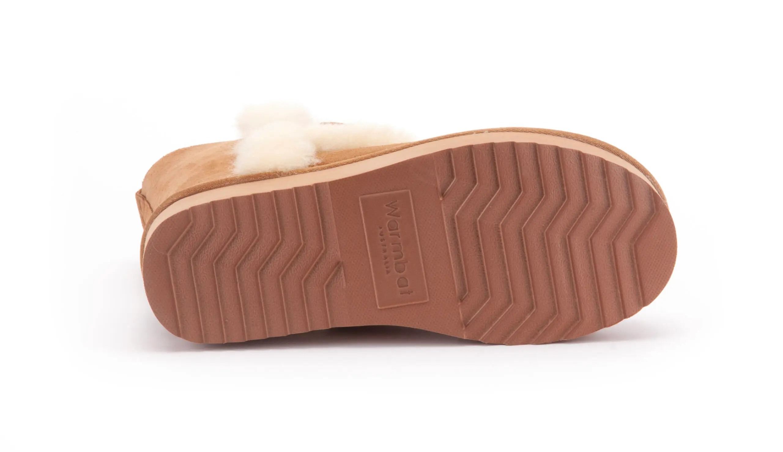 Specificaties Artikelnummer KNG376125-43 Type Boots Highlights Nieuw Leest Kangaroo wool plateau Materiaal Waterafstotend suède Merk Warmbat Kleur Cognac Binnenzool 100% merino wool Loopzool EVA met rubber