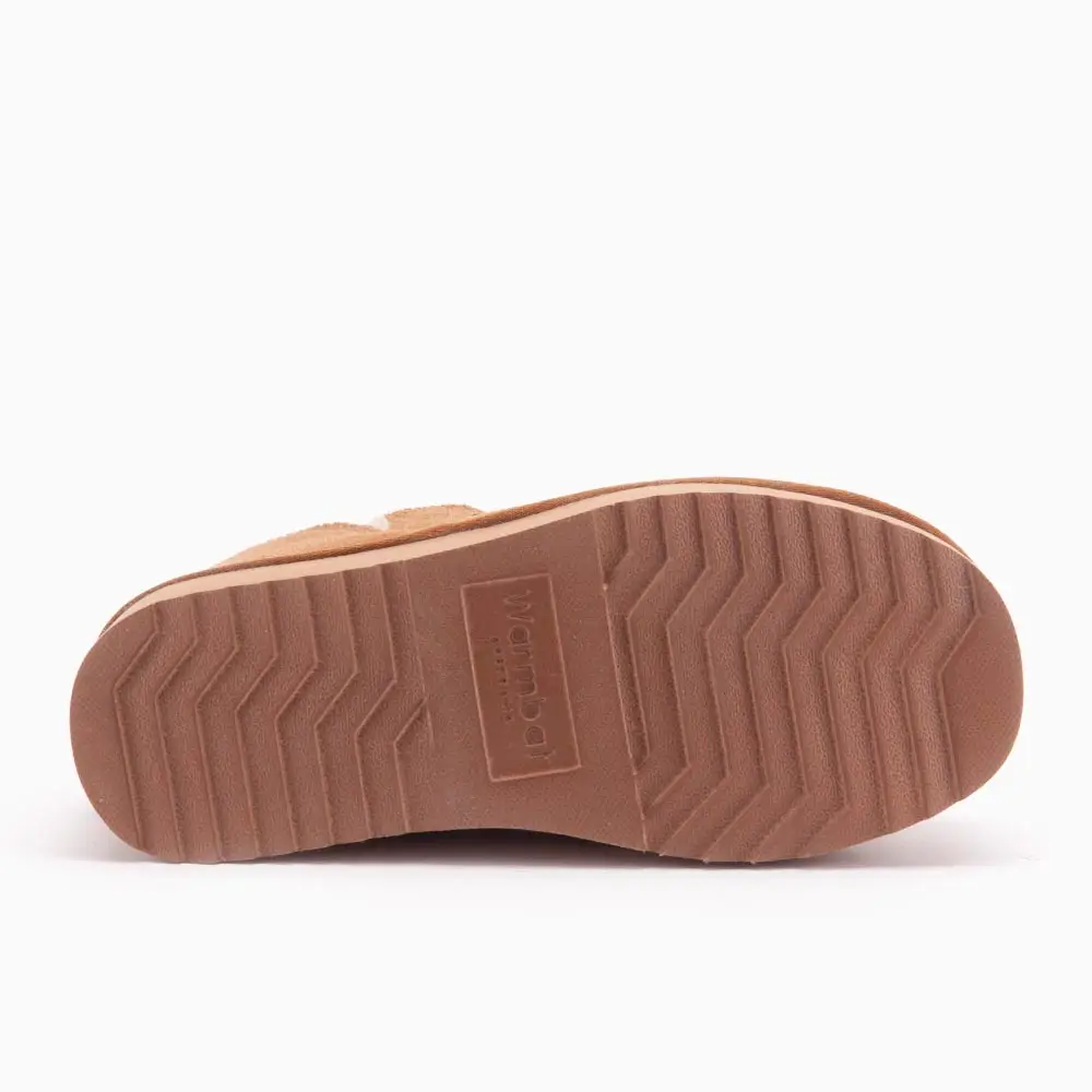details: Het oog wil ook wat en daarom is de buitenkant van de pantoffels gemaakt van suède. Een luxueus materiaal dat fluweelzacht en glad is. De plateauzool van de Warmbat home-shoes is tevens gemaakt van rubber en EVA (Ethyleen-vinylacetaat). Deze combinatie zorgt onder andere voor een goede grip op harde vloeren, bescherming tegen kou en schokken!