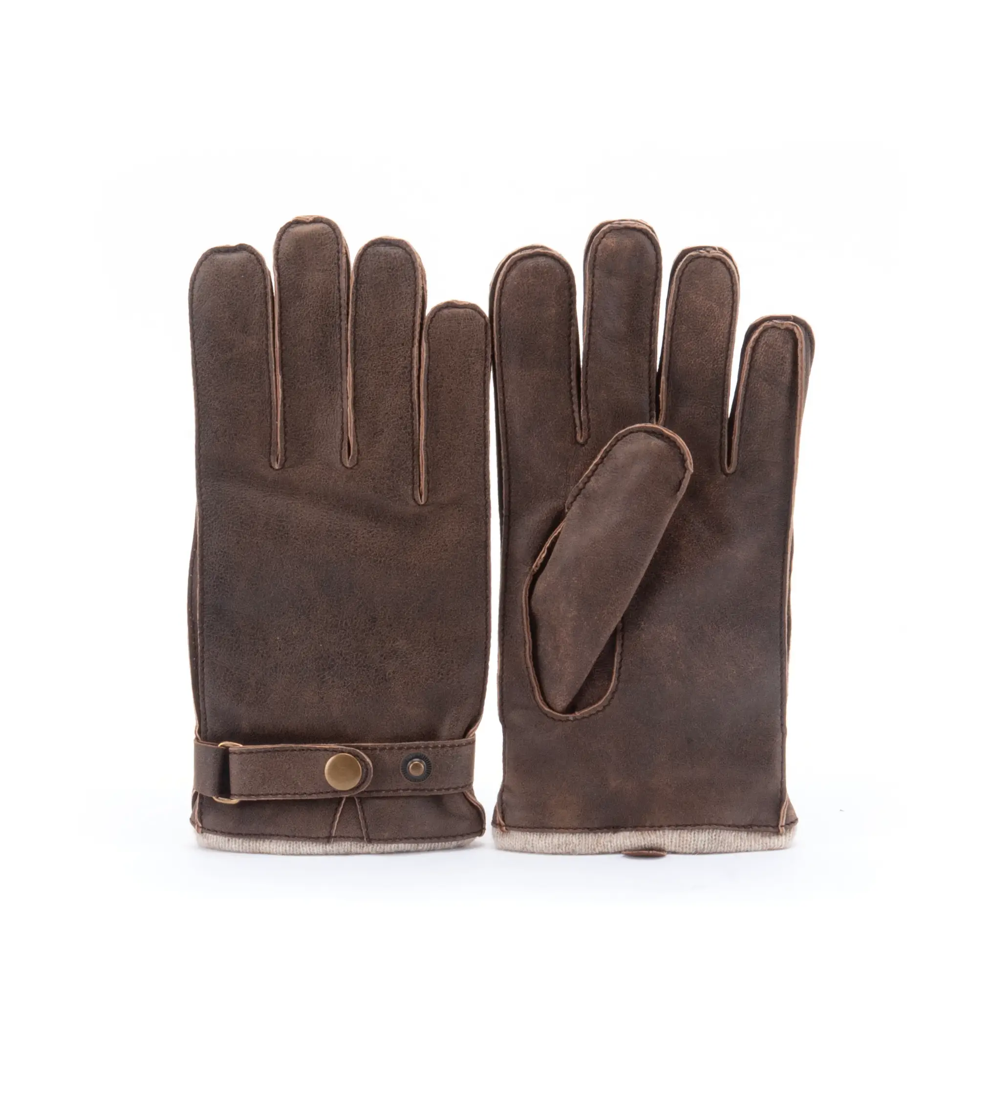 Artikelnummer GLO402560-43 Type Casual handschoen Maat S/8.5, M/9, L/9.5, XL/10 Materiaal Cracked Leather Merk Warmbat Kleur Bruin