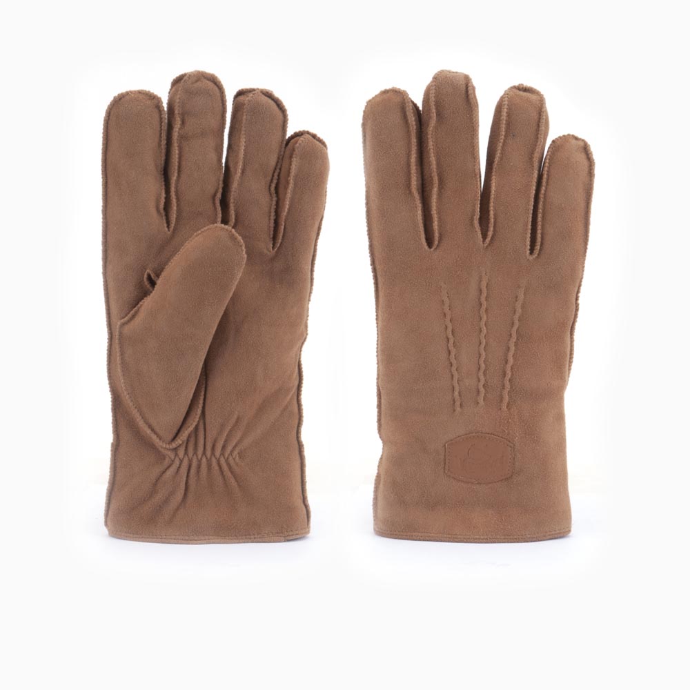 GLO409025 gloves men suede cognac bruin suede heren handschoenen met lammy voering