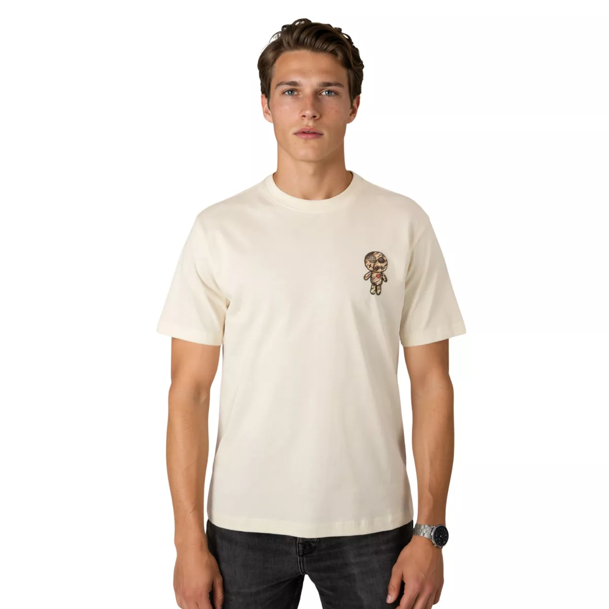 A graphic T-shirt featuring a bold style print on the front, combined with the Wrong Friends voodoo. The front feels strong and direct. On the back, the same print is enlarged and pulled across the shirt, turning the piece into a clear eyecatcher. The regular fit sits naturally on the body and feels comfortable from the first wear.
